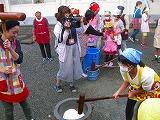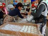 子どもたちが来る前に、保護者、地域のみなさんで2・3回分ぐらいはもちをちぎって丸めました。