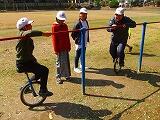 教頭先生が修理してくれて使えるようになった一輪車乗りの練習に励んでいます。今は、まだ誰も乗りこなせませんが、コツをつかみかけている子もいます。