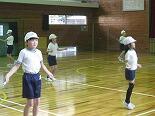 ちっちゃな1年生からおっきな6年生までが混ざって並んで跳ぶので、これはなかなか長く続けることができませんでした。それでも、低学年の児童も必死になって跳んでいました。ひっかかってしまう低学年の児童にも、みんなの温かい励ましの言葉がかけられていました。