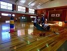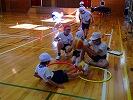 「バトン飛ばし」、「紙鉄砲」で投げる運動の練習です。