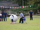 大玉をタイヤに乗せて、落とさないように引っ張って行きます。