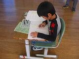 料理名人のお姉ちゃんのことを読む人によく伝わるように、順序を考えてくわしく書いているところです。落合先生との会話の中でヒントやアドバイスをもらい、一生懸命に考える姿がありました。