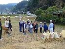 稲刈り後、掛干ししていた稲をどんどん降ろして