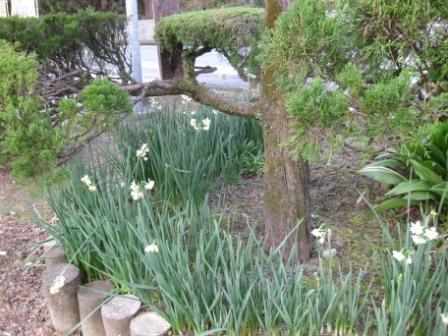 スイセンの花が咲き始めました。もっと日当たりがよいといいのですが、午後2時ぐらいになると山で遮られ日が陰ってしまいます。日照時間が短いのが残念です。