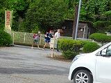 校長先生が安全確認をしながら、登校班と一緒に登校しています。