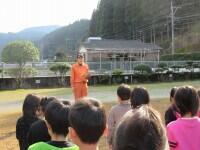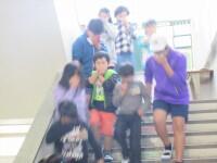 12日、火災についての避難訓練が行われました。2名の消防士の方に来ていただいて行いました。様々な場合を想定して、自分自身で避難経路を考え行動できるように、今回は清掃時間中に出火し、放送で出火場所を聞いて避難する、という形で行われました。縦割りでの清掃のため、高学年の児童が同じ掃除場所の低学年の児童に「ハンカチで鼻と口を押さえて!こっちに逃げるよ!」と声をかける様子も見られました。