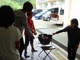 体育館で大勢で食べるのは、いつもとはまた違った雰囲気で、