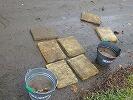 大きなスポンジは、おもしろいほど水をグングン吸い取っていきます。