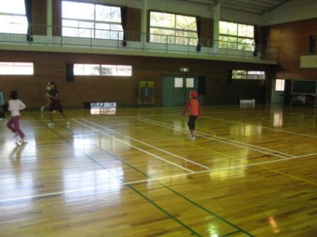 グリーン班の鬼ごっこ、体育館をの中で元気よく走り回っていました。