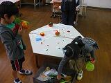 八百屋さんごっこというのが面白いですね。交代でしていたレジ役とのやりとりが面白かったです。社会見学や日常生活の中で学んだお店の人の対応をよくまねしていました。とても丁寧な応対でしたよ。
