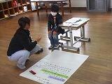 2年生は希望さんが一人なのでマンツーマンの授業です。希望さんの心の動きを言葉に拾い出し、教材文の詩の書き方を参考にしながら落合先生とのやりとりの中で模造紙に文章化していました。