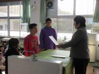 そのあと年度末ということで、日南市版画展・校内漢字検定・租税教室の絵はがきコンクールなどたくさんの表彰がありました。