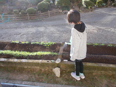 子どもたちは今日も朝から野菜に水やりをしています。