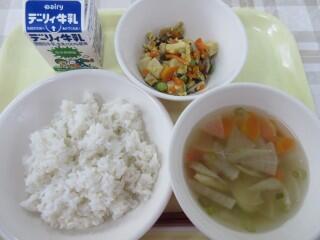 今日の給食 投稿日時 : 2017/02/20 学校管理者 ☆ むぎごはん☆ だんご汁☆ 高野豆腐の卵とじ☆ 牛乳 だんご汁の中には、だいこん・にんじん・ごぼうなどの野菜と一緒に平たい団子が入っていました!だんごの形を見て、「ひょうたんみたい!」「雪だるまだね!」というお話しをしている子たちもいました♪ 高野豆腐の卵とじは、高野豆腐の他に鶏肉やかまぼこ、にんじん、しいたけ、枝豆も入っており、色どりもきれいな1品でした! Tweet