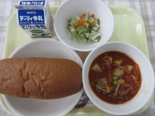フレンチサラダのドレッシングは、子どもたちにできるだけ添加物などを使わない安全でおいしい給食を食べてほしいという栄養の河野先生の思いが込められたドレッシングでした!キュウリ・キャベツ・にんじん・ささみなどが、酢・塩・こしょう・油・砂糖で味付けされたサッパリとしたサラダでした!