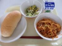 今日の給食 投稿日時 : 2017/04/21 学校管理者 ☆ミニコッペパン☆ミートソーススパゲティ☆春キャベツのサラダ ・ミートソーススパゲティはみんな大好き! ペロリとたいらげました! ・キャベツは、春にとれるものが最もおいしい ものだそうです。 やわらかくて、あまみも強く感じます。 彩りが爽やかなサラダでした。 Tweet