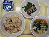 吹き寄せご飯、サンマの梅煮、いんげん、牛乳、豆腐のすまし汁
