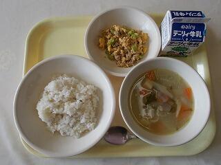 12月17日(水)の給食 投稿日時 : 13:15 学校管理者 〈今日の献立〉 ○まる麦ごはん ○豚汁 ○じとっこ三色丼 ○牛乳 豚汁には、大きくカットされた豚肉がたくさん入っていて、食べ応えがありました。 じとっこ三色丼は、ごはんによく合い、おいしくいただきました。 Tweet