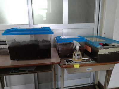 今日の朝は、先生と一緒に野菜についている害虫の駆除をしていました。