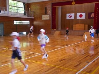 今日は、体育館で準備運動の一つとして、ランニングをしていました。