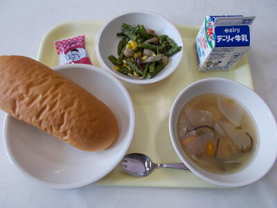 今日の給食は、宮崎の特産品である地頭鶏を使ったカレーです。