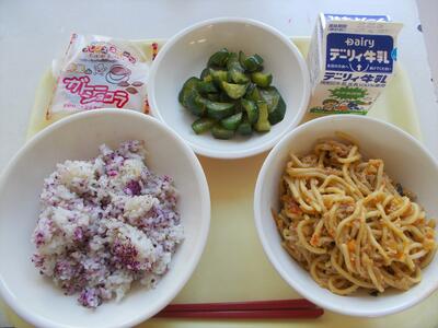 今日は中学生のリクエスト献立給食でした。ジャージャー麺は具が多く、食べ応えがありました。