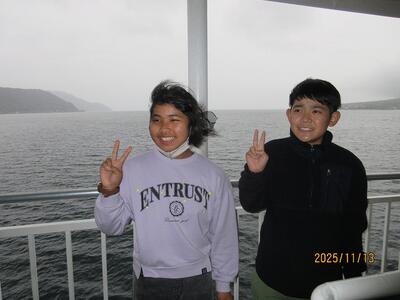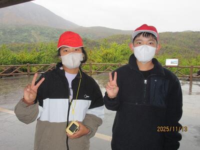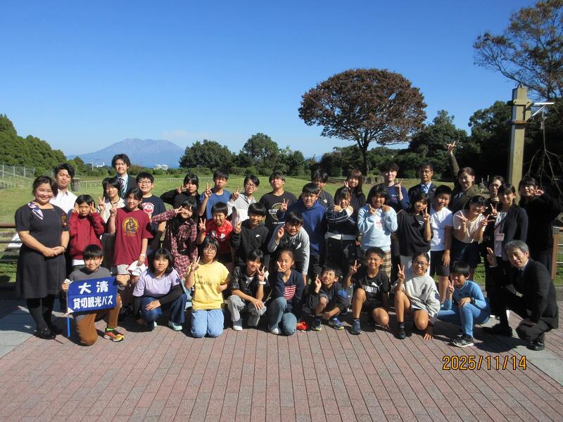1日目は、出発式の結々さんの挨拶から始まり、有村溶岩展望所、いおワールドかごしま水族館、維新ふるさと館、最後は鹿児島市内班別自主研修でした。お天気は雨でしたが、活動班ごとに分かれて助け合いながら行動をしていました。