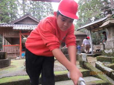 宮司の金丸さん、細田中学校のみなさん、一緒に掃除をしてくださった保護者のみなさん、地域のみなさん、ありがとうございました。