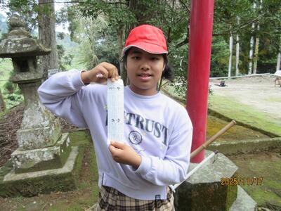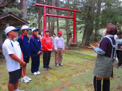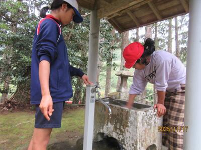 細田中学校の先輩方に、よりきれいになる掃除の仕方や手水舎のことを教えてもらいました。