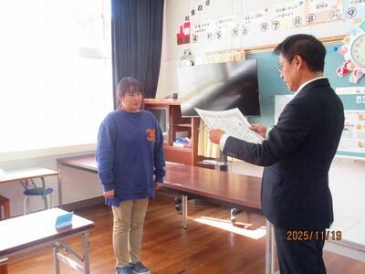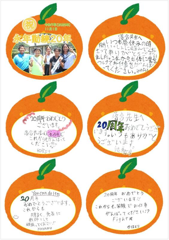 本校の落合美智子先生が、永年にわたり、職務に精励された教職員として表彰されました。