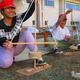この木の穴の溝におちた木粉が黒くなり、煙が出てくるのですが、そこからが勝負!なので2人とも、必死に頑張りました。