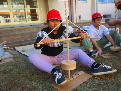なんと、火おこし体験で使用した道具は、先生方の手作りです。キラキラ