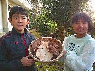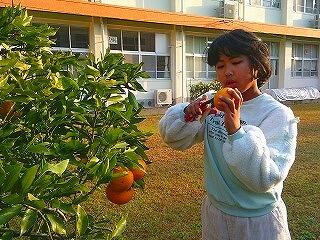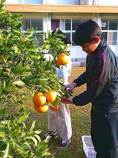 今日の朝の時間は、校庭に実っているみかんとしいたけの収穫をしました。イベント