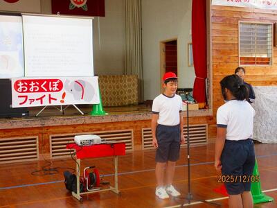 開会式では、「〇回を目指します!」と目標を発表しました。この目標を達成するために、体育の時間、2人で一生懸命頑張ってきました。キラキラ