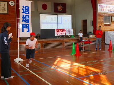 今日のフリー参観日では、校内持久走大会がありました。今年は、運動場を走るのではなく、シャトルランをおこないました。