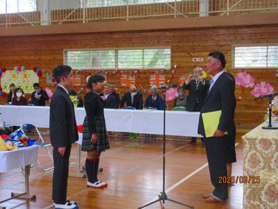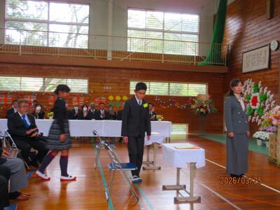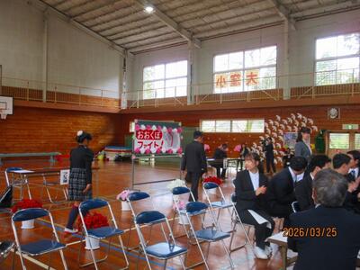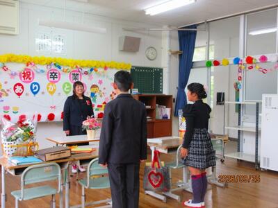 3月25日、大窪小学校最後の卒業式が挙行されました。2人の門出をお祝いするために、約60名の方がご参列してくださいました。