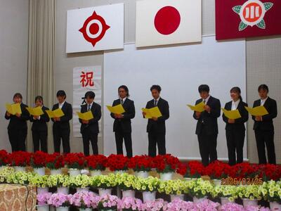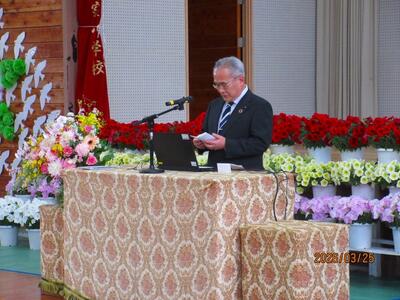 式では、たくさんの方にお祝いの言葉をいただきました。 少し緊張をしていたようですが、こんなにたくさんの方からお祝いをしていただき、2人にとって、記憶に残る思い出の卒業式になったことでしょう。