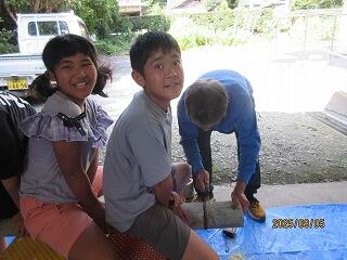 この木の穴の溝におちた木粉が黒くなり、煙が出てくるのですが、そこからが勝負!なので2人とも、必死に頑張りました。
