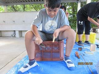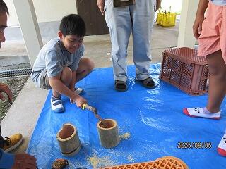金曜日、クラブ活動で、火おこし体験をやりました。