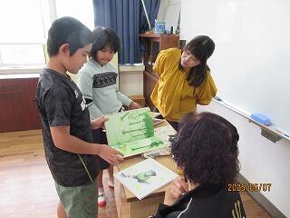 給食時間は、好きな食べ物は何ですか?日南はどうですか?などと英語で質問タイムになり、とても盛り上がりました。そんな中、カンヤ先生は、日南に来て「山や自然の緑がとても美しい」とおっしゃっていました。カンヤ先生が感じられているように、大窪地区の新緑の美しさは格別だと思います。