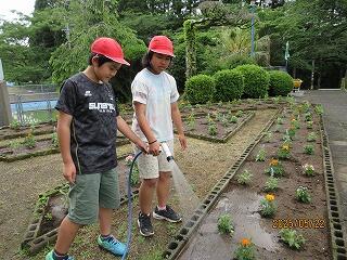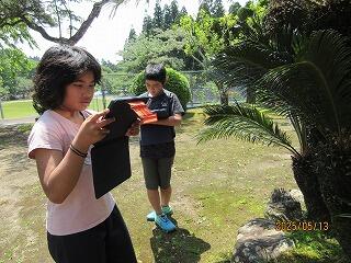 2人でミミズを探していました。明日の総合的な学習の時間で使うそうです。