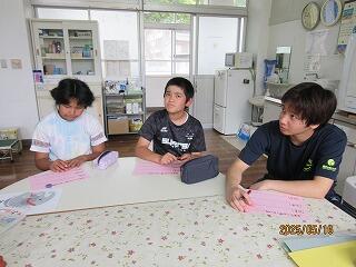 読み聞かせが終わった後は、お互いに印象に残った場面や感想を伝えます。