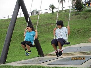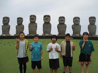 サンメッセ日南では、なぜ日南市にイースター島のモアイ像が復刻されたのかなどの説明をしていただきました。子ども達は、7体の巨大なモアイ像に興味津々で、特に学力の神様に触り願い事をしていました。以前、事前学習で図書司書の多田先生よりアサギマダラやツマベニなどの蝶が生息していることを学び、調べていたので、実際蝶を見つけた時は喜んでいました。それぞれ行きたい場所へ行き、楽しそうに過ごしていました。