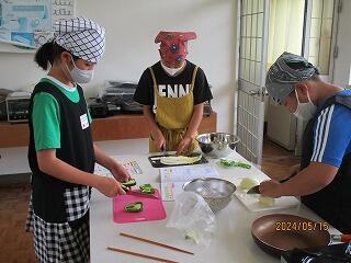 6年生は「野菜いため」「スクランブルエッグ」です。3人で分担を決め、分からないところは教科書で確認したり、先生にアドバイスをもらったりしながら作っていました。子ども達は、家でも料理の手伝いをするので、楽しそうに作っていました。こちらも美味しくできたようです。