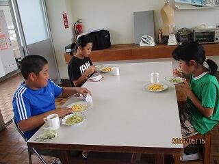 調理実習後は給食だったので、お腹いっぱいで給食を食べられるかなと心配しましたが、こちらも完食していました。