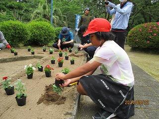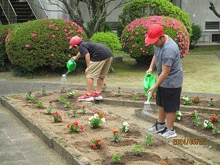昨日から環境整備員さんが芝刈りや植木の剪定などを行ってくださいました。今日は、子ども達とJA青年部による花の苗植えもあり、学校全体がとてもきれいになりました。明日からまた、子ども達も職員も気持ちよく学校生活が送れます。暑い中、ありがとうございました。