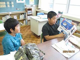 今朝のブックタイムは、自分の借りた本を友達に紹介する時間でした。どんな内容だったのか、印象に残っている場面や工夫されていた所などを上手に紹介していました。図書担当の先生からも「紹介の仕方が段々と上手になってきました。その本を借りて読みたくなるような内容でした。」と話されました。