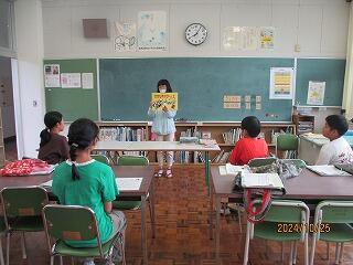 朝の時間は、図書司書の多田先生による読み聞かせと本の紹介がありました。