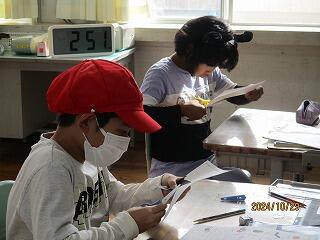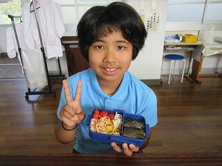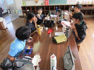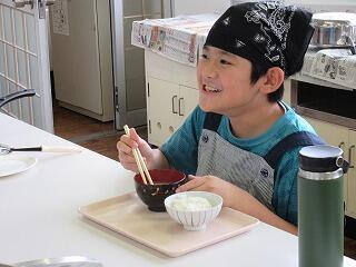 今日は5年生が、5~6校時の家庭科の時間に調理実習を行いました。「ごはんとみそ汁」を作りました。みそ汁の具は、大根・ネギ・油揚げの予定でしたが、昼休みに収穫した学校の椎茸も入れ、具だくさんのみそ汁となりました。2人とも時々家で料理の手伝いをするので、野菜切りも上手で、洗い物も協力し合いながら行っていました。自分達で作ったごはんとみそ汁は、おかわりをするほど美味しかったようです