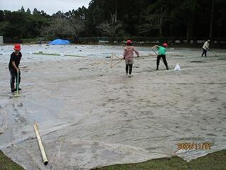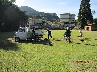 午後から運動会に向け、運動場整備を行いました。お忙しい中、保護者が来てくださり、水はけの悪い場所に土を入れる作業をしました。運動場整備自体は2回目になります。それ以外にも、時間を見つけては運動場の状態を見に何度も足を運んでくださるなど、本当にありがとうございます。